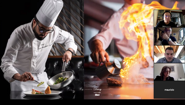 他將自己親自主持設(shè)計的深圳高端餐飲品牌——都一樂斯項(xiàng)目進(jìn)行講解!從接到項(xiàng)目初期到規(guī)劃設(shè)計,找到設(shè)計靈感來源,再如何把靈感從抽象到具象落地呈現(xiàn)到項(xiàng)目的整個過程,向國際設(shè)計交流會議進(jìn)行講解和展示!他認(rèn)為設(shè)計師對美會有獨(dú)特的眼光和遠(yuǎn)見,濃縮凝聚成獨(dú)有品味呈現(xiàn)在設(shè)計作品中!屏幕下,隔空能感受到國際設(shè)計師對該項(xiàng)目作品頗感興趣和熱情,對設(shè)計方案贊賞有佳!